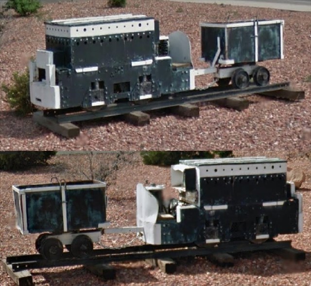 p.s. As an "engineer, mechanic, general contractor" I just have to clear up one misconception. In the old logs you will often find reference to a "steering wheel." Trains do not need to be 'steered,' they follow the tracks! DA! What you are seeing is the "Hand Brake" like which used to be highly visible on the rear platform on old rail cars - long gone with the advent of modern air brakes. The massive 'Rotary switches' at left of the TINY seat was the speed control - more contacts closed, more speed. Batteries were below the deck with a massive DC motor between the drive wheels - look! WE DID!
